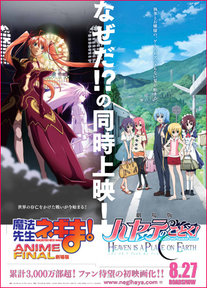 В субботу в полночь официальный двойной сайт фильмов Negima! Magister Negi Magi: Anime Final и Hayate the Combat Butler! Heaven is a Place on Earth опубликовал общий трейлер. В отличие от предыдущего тизера, данный трейлер содержит кадры из фильмов. Фильмы выйдут одновременно 27 августа.